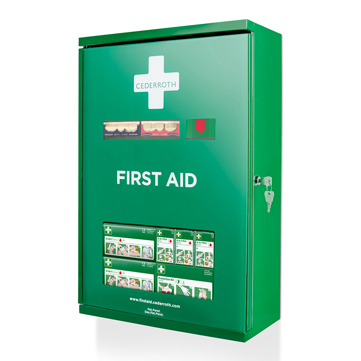 Cederroth Førstehjelpsskap med refill er spesielt tilpasset for arbeidsplasser med utsatt miljø, som f.eks. smuss, støv eller fukt. Skapet egner seg på steder der det er behov for å ha komplett førstehjelpsutrustning til enhver tid.