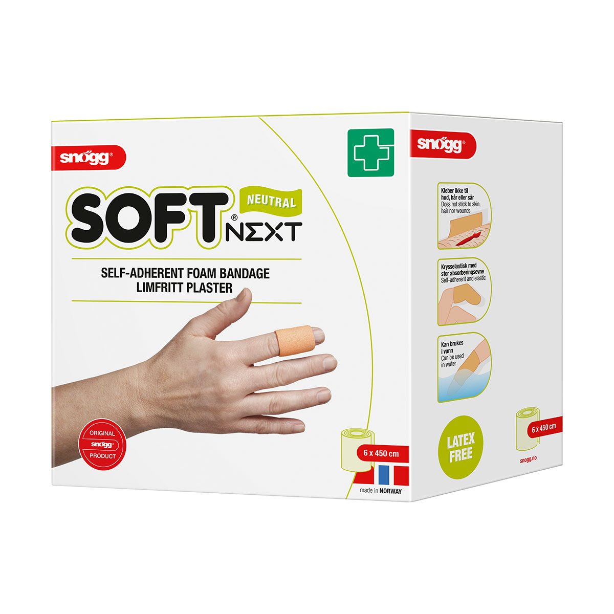 Soft NEXT 6cm x 1m Limfritt plaster Selvheftende, blodabsorberende, hudvennlig, tverrelastisk, lateksfritt og limfritt plaster som gir stor bevegelighet over ledd.