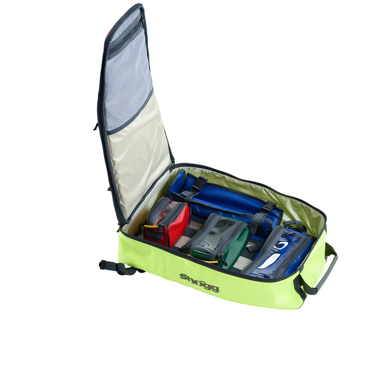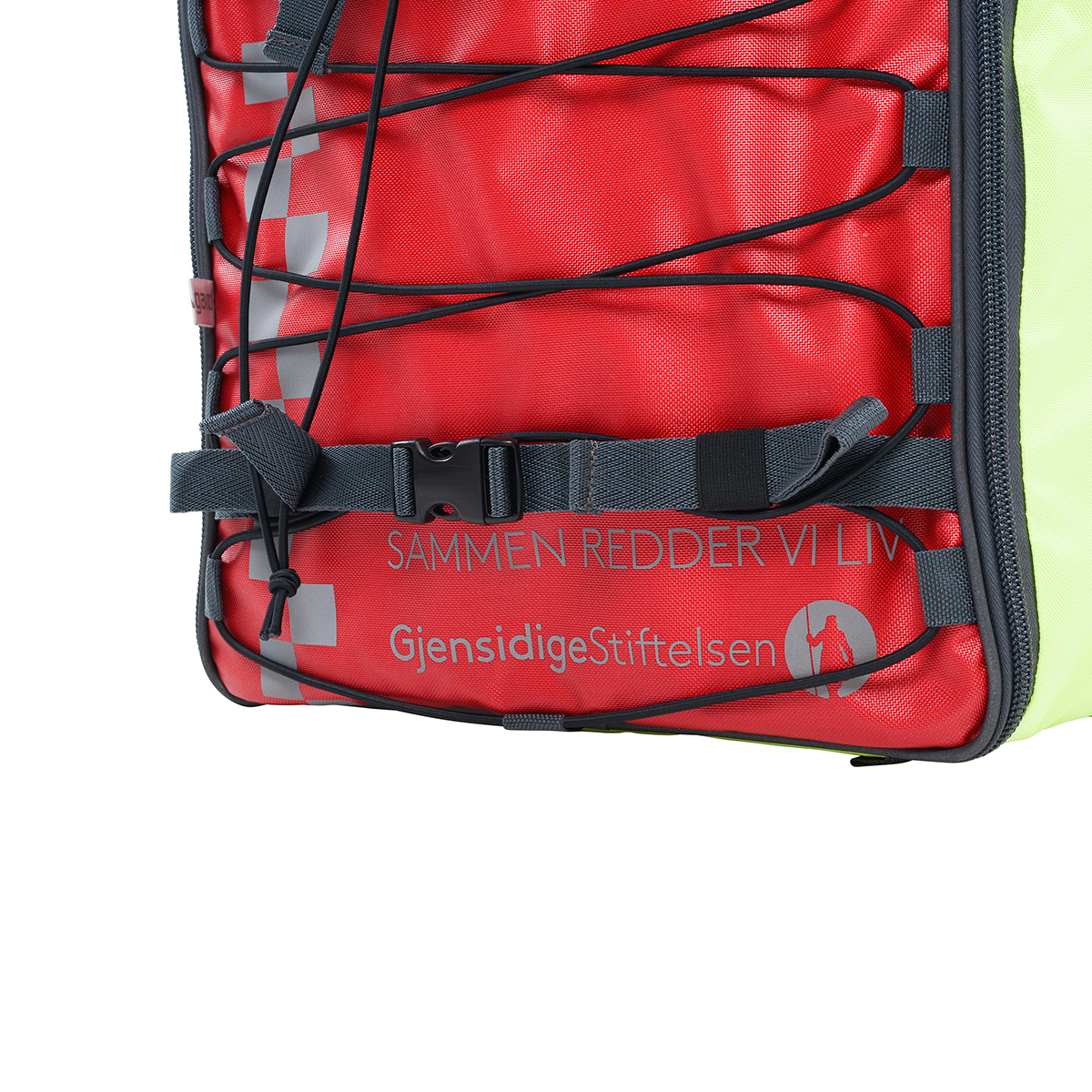 Akutthjelpersekken er utarbeidet i PVC-fritt, vannavstøtende, antibakterielt stoff som tåler bruk under krevende forhold. utvendig er det festepunkter for eks. Jervenduk. Akuttsekken leveres med et godt bærehåndtak i toppen, hoftebelte, samt justerar anatomisk utformede ryggsler som kan "skjules" når de ikke er i bruk.