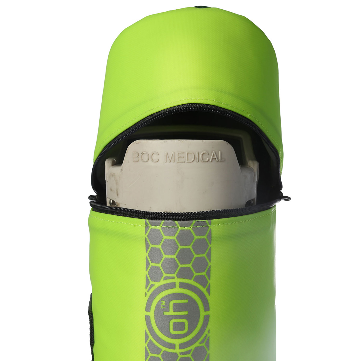 En lett og lys bæreveske for O2 flaske. En enkelt måte og frakte O2 flaske dersom det ikke er plass i akuttsekken.