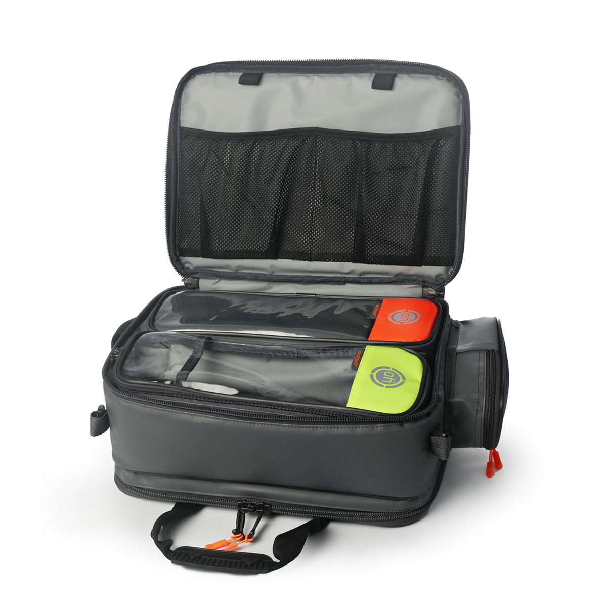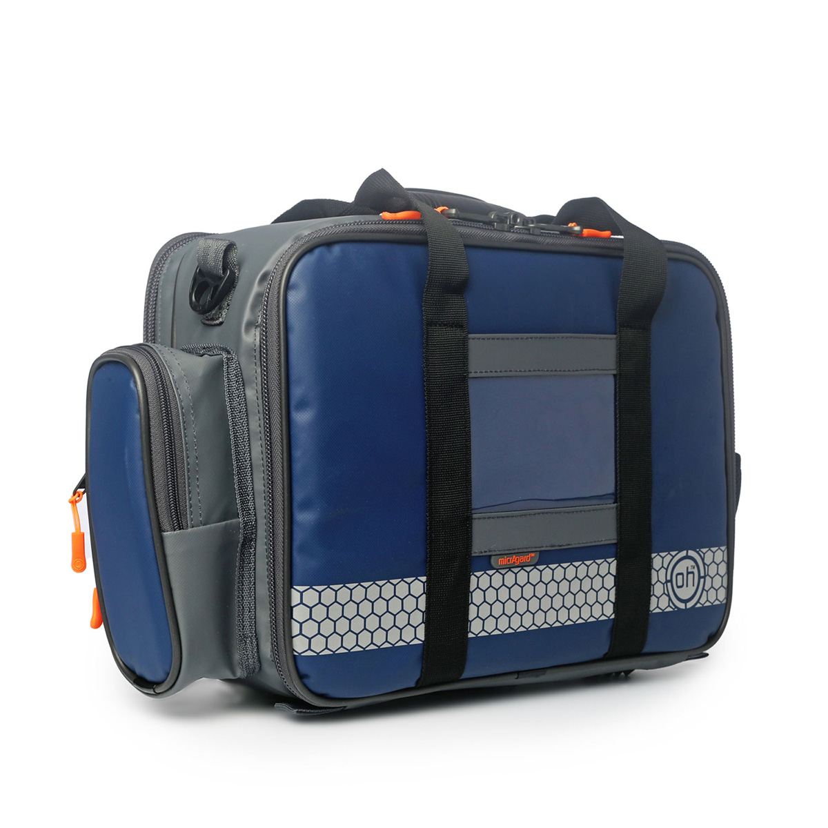 Denne vesken er designet for alle som gjennomfører hjemmebesøk i samfunnet, som jordmødre, pleiere og sykepleiere. Den har et frontrom dimensjonert for å passe 2 x store eller 4 x små OH-moduler, samt en polstret lomme på baksiden, som passer en 15,5-tommers bærbar PC, med en intern skillevegg for dokumenter. På innsiden finner du to store nettlommer med elastikk og penneløkker.