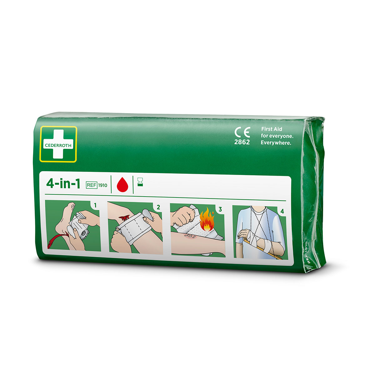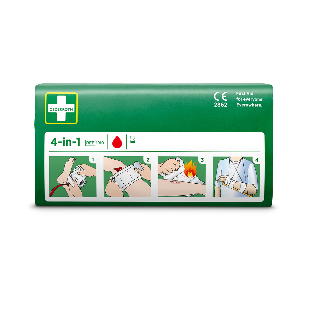 Cederroth 4-in-1 blodstopper er en steril universalforbinding med fire funksjoner: