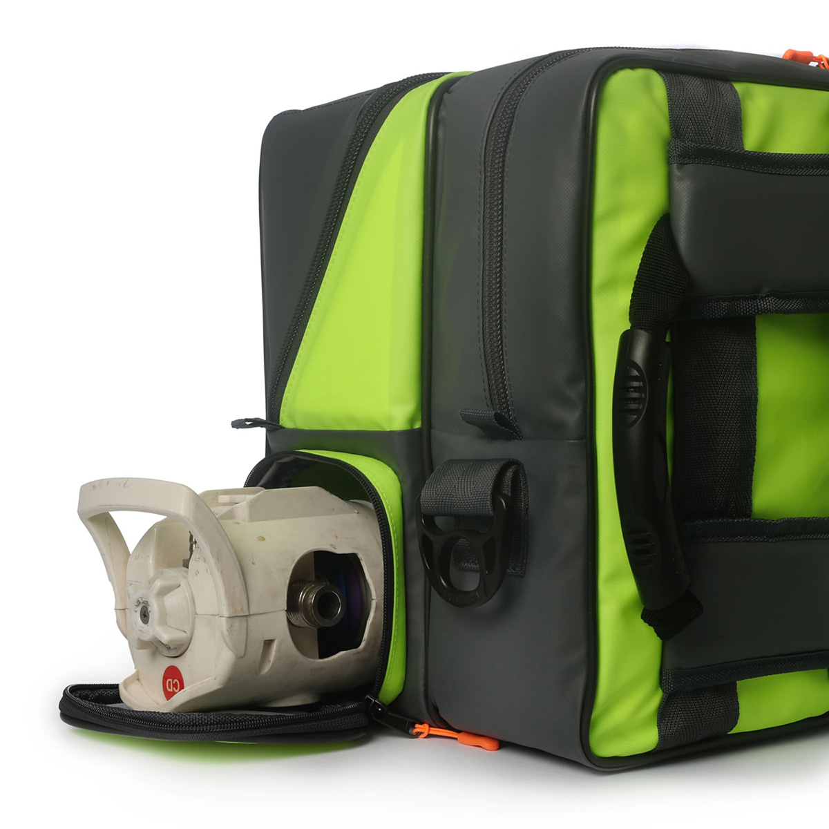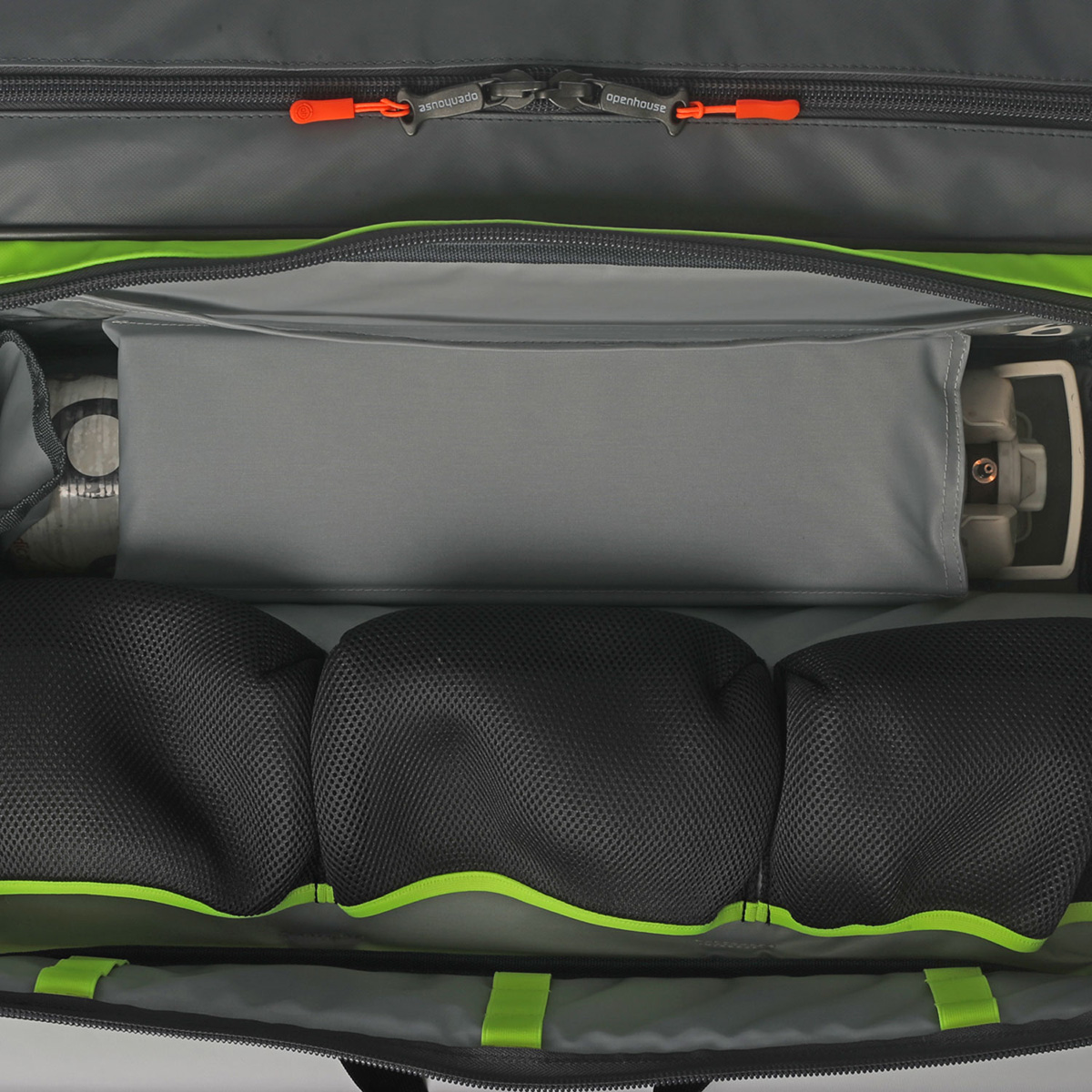 Denne ryggsekken er delt inn i to seksjoner med nettinglommer og strikk. God plass for moduler.