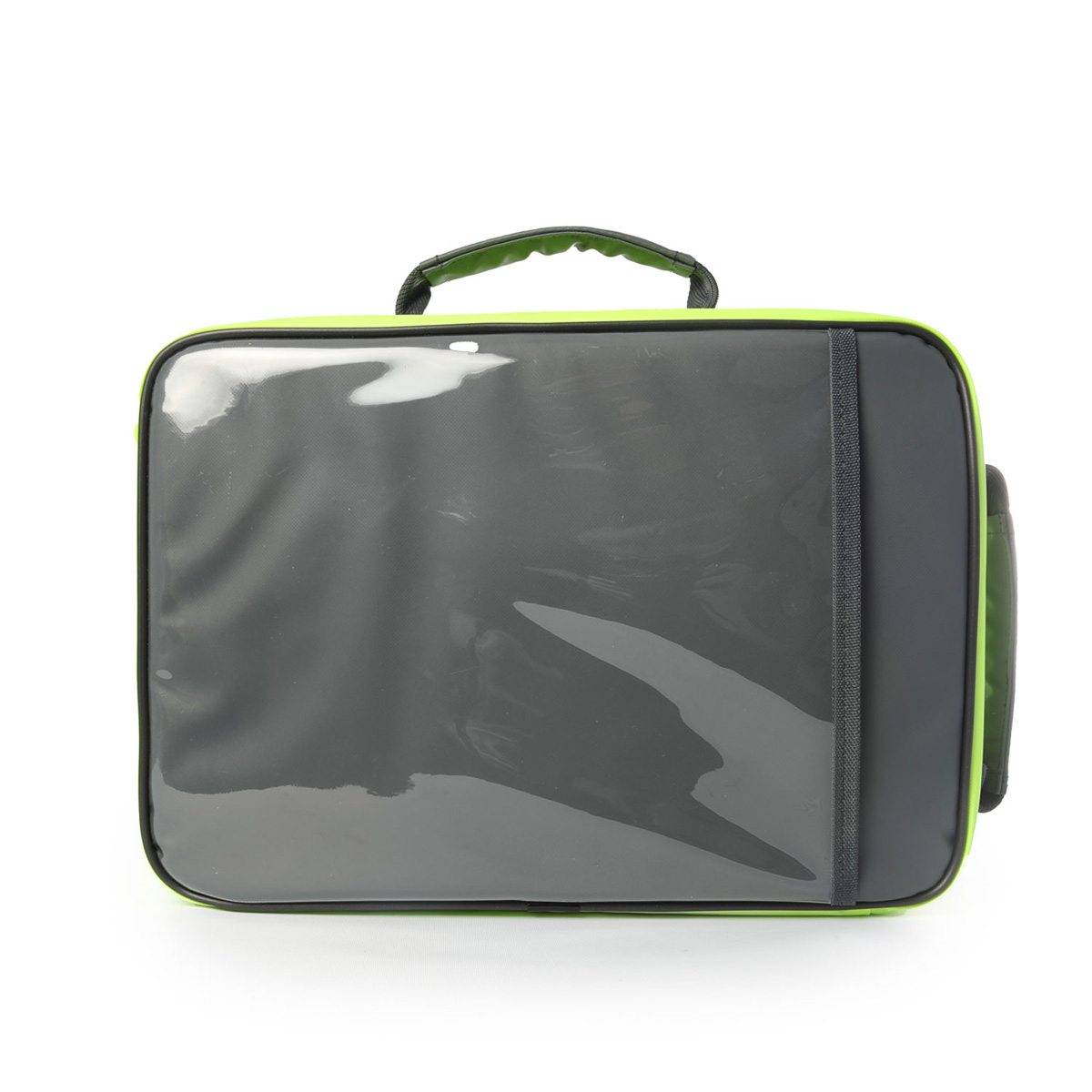 - Gjennomsiktig vidnu på hele baksiden av vesken for innholdsliste, sjekkliste el. (passer A4 format)