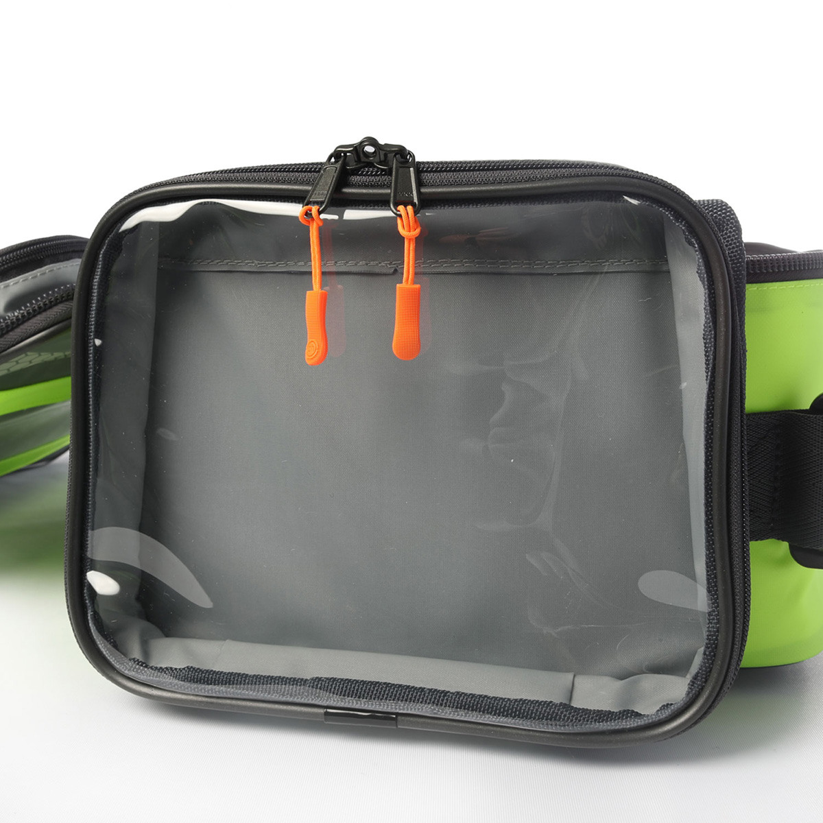På innsiden av lokket til vesken er det et gjennomsiktig rom med borrelås. Her kan man tilpasse vesken slik man selv ønsker med ulike ampulleholdere.