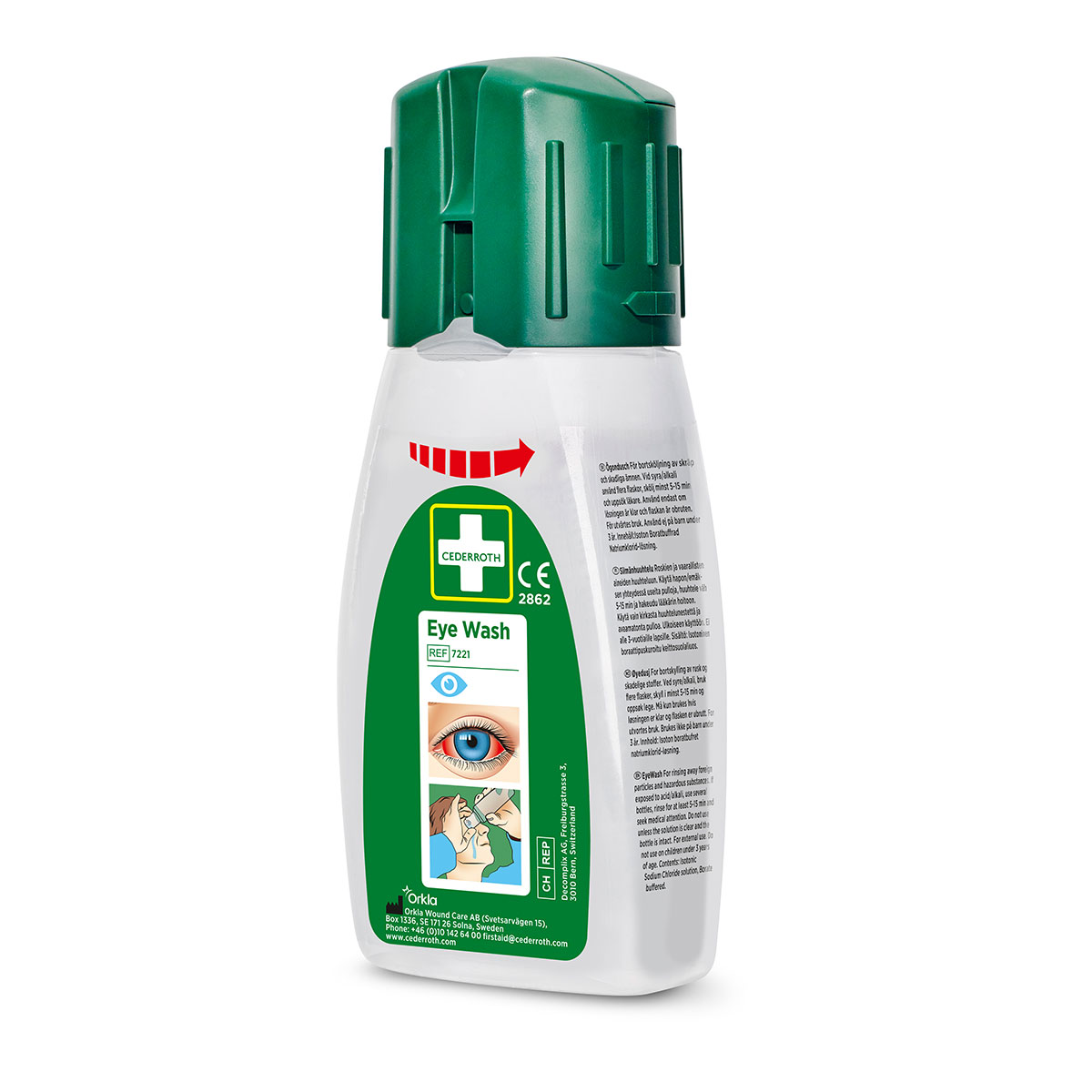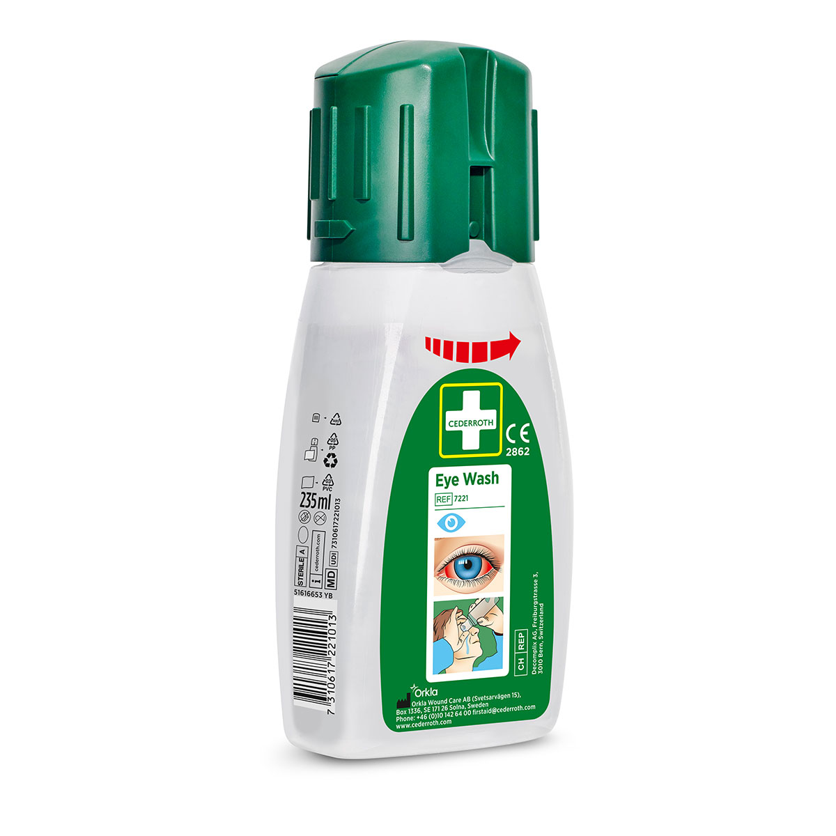 Din egen øyedusjflaske som du enkelt kan ta med deg i lommen eller i belteholder. På denne måte er den raskt tilgjengelig ved ulykkestilfeller. Lett håndterlig flaske med ergonomisk øyekopp og rikelig flyt av væske. Rask og enkel å åpne. Åpnes med ett enkelt håndgrep. Vri og flasken er åpen